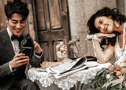 在从前的时光里,女孩会穿上母亲传承下来的婚纱、男孩会打上领结,去往照相馆拍一张照。那时候的人们对于爱情,或许比我们更单纯和真心。 . . .